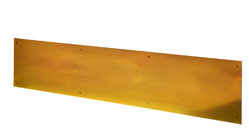 Brass Kick Plates have become even more popular in recent years with the introduction of 'PVD Brass' to the market. PVD is a stainless steel kick plate titanium coated to look just like a polished brass kickplate. Due to its stainless steel core, it offers exceptional strength compared to regular brass. It will not tarnish or age over time as a solid brass kick plate will. This high tech finish also carries a lower price point to traditional brass, making it more affordable and offering higher performance. We consider it a wonder material as it can be installed in pretty much any location.