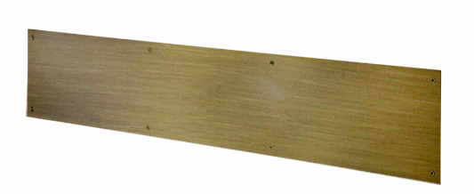 PVD is a stainless steel kick plate titanium coated to mimic the appearance of a solid polished brass kickplate. Due to its stainless steel core, the kick plate will be extremely strong. It will not tarnish or age over time as a solid brass kick plate will. Finally, this finish is very low maintenance and is the best choice for interior and exterior use.